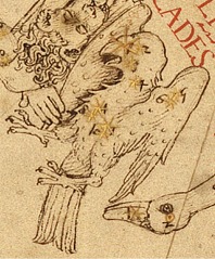 Besonders nachhaltig hat Dürer das Sternbild Leier geprägt: Nach der griechischen Sage bestand der Resonanzkörper aus einem Schildkrötenpanzer. Die arabischen Astronomen konnten damit wenig anfangen, sie orientierten sich nur an den Umrissen des Bildes, wodurch daraus ein Gefäß mit Fuß und Henkeln wurde. Der arabische Name der Wega, des hellsten Sterns der Leier, bedeutete aber Vultur cadens, herabfallender Geier. Und so wurde das Bild in der nacharabischen europäischen Tradition dargestellt, erstmalig möglicherweise auf einem Manuskript aus Torun aus dem 14. Jahrhundert. Auch auf den Karten von 1435 und 1503 ist er als Vultur cadens dargestellt. Mit etwas Fantasie kann man auf der Karte von 1435 das Sternbild als Vorform der Darstellung von Dürer werten: Dürer hat nämlich die beiden Traditionen vereinigt indem er einen Geier zeigt, dessen Leib zu einer Art Leier geworden ist. Noch 1801 zeigt Bode das Bild in der Art von Dürer, doch kam diese Tradition im 19. Jahrhundert zum Erliegen. Bildlich aufgeführt sind hier einige Beispiele.