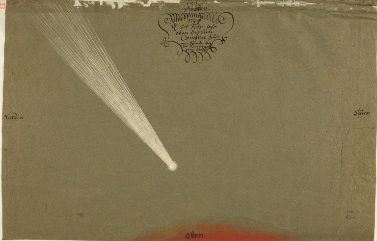 Der Komet von 1744 war am 9. Dezember des Vorjahres entdeckt worden, die letzte bekannte Beobachtung stammt vom 22. April 1744. Im Gedächtnis geblieben ist er vor allem wegen seines breit aufgefächerten Schweifes. Johann Gabriel Doppelmayr machte Rösel von Rosenhof am 6. Januar auf den Kometen aufmerksam, woraufhin der ihn aufmerksam beobachtete. Im Folgenden entwickelte er eine eigene Theorie über die Entstehung der Kometenschweife. Dass Rösel kein begnadeter Astronom war, zeigt aber seine Darstellung der Kometenbahn: Der Komet umkreist hier nicht die Sonne, sondern einen Planeten.